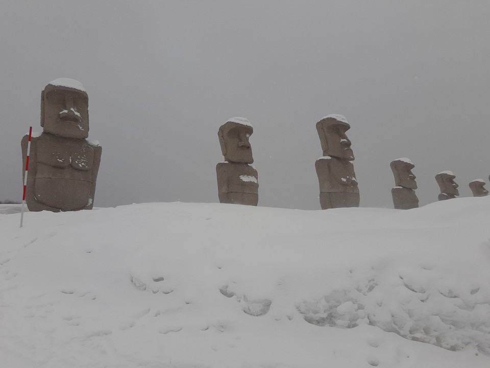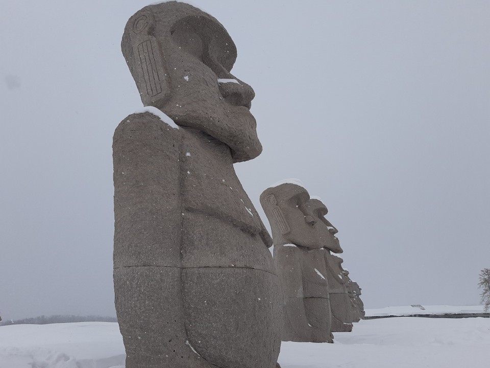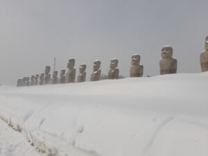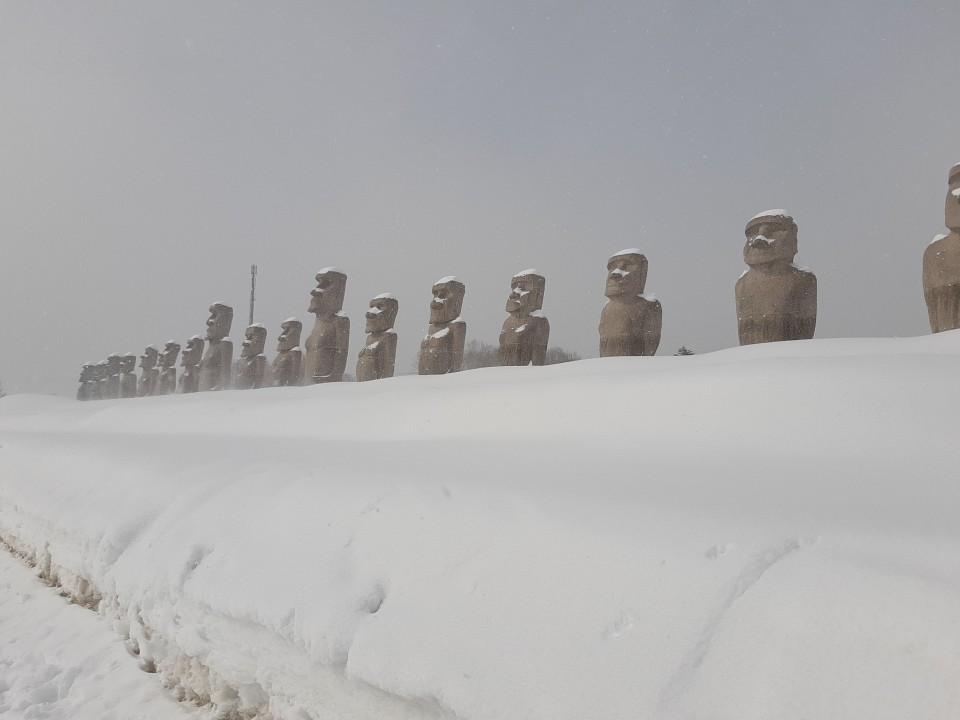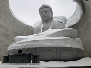 Hill of Buddha and Moai Statues in Sapporo (Winter)