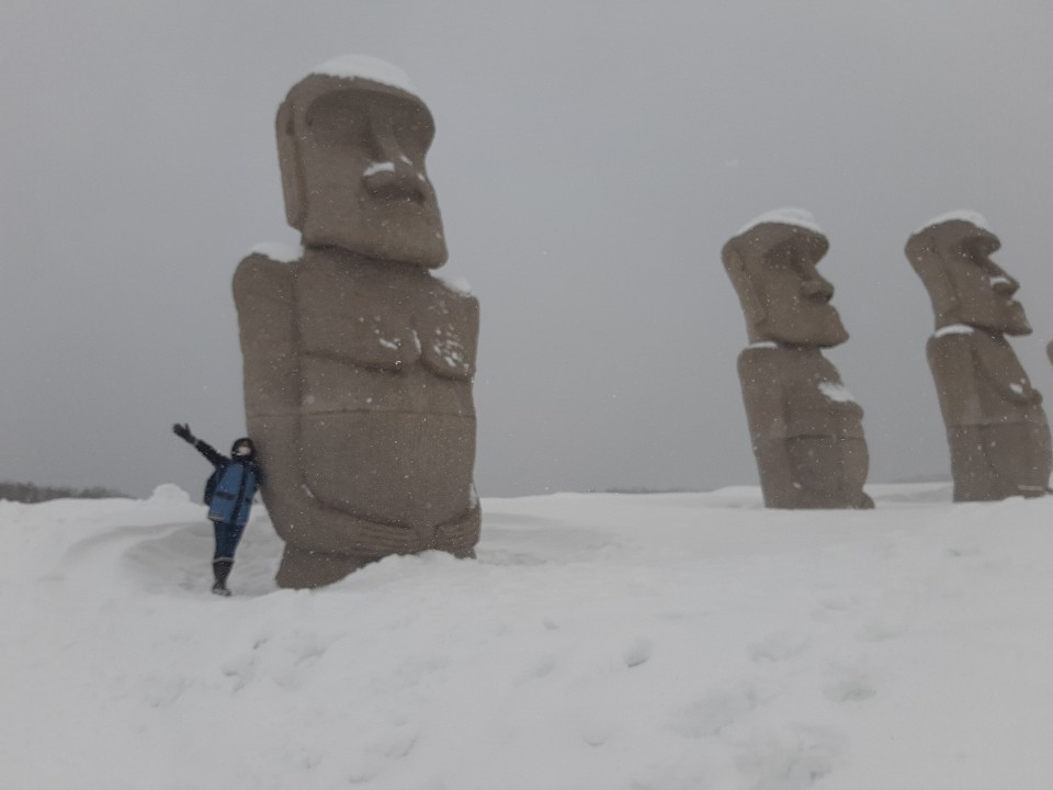It was a lazy Sunday during a big snowstorm in Sapporo, as I was sipping a hot coffee in the morning, I was invited to visit The Hill of the Buddha and Moai Statues located in Makomanai Takino Cemetary. Since I had never visited that place, and I was always sitting down doing coding works the entire week, I decided to go. The trip was better than I expected since visiting the place during winter gave me different kind of serene experience!