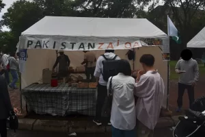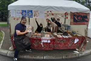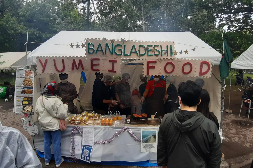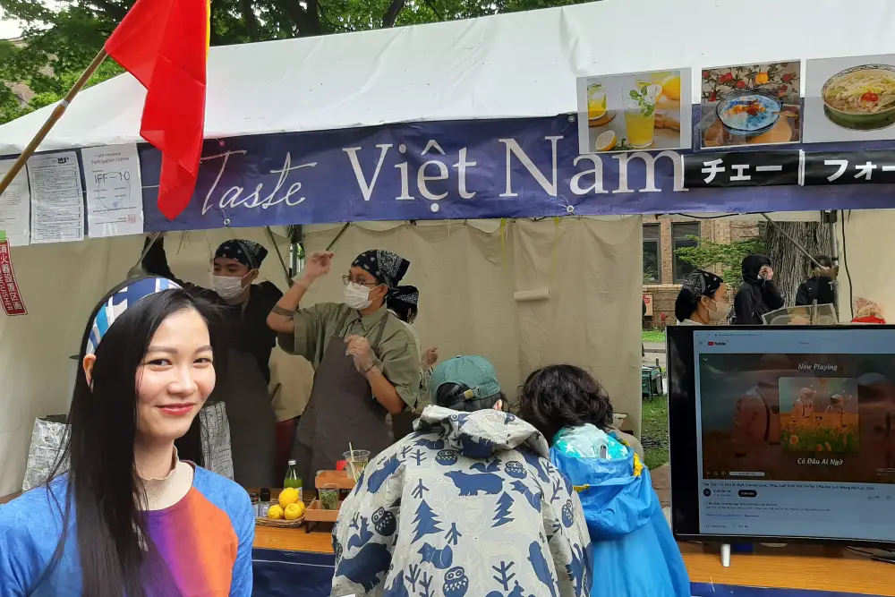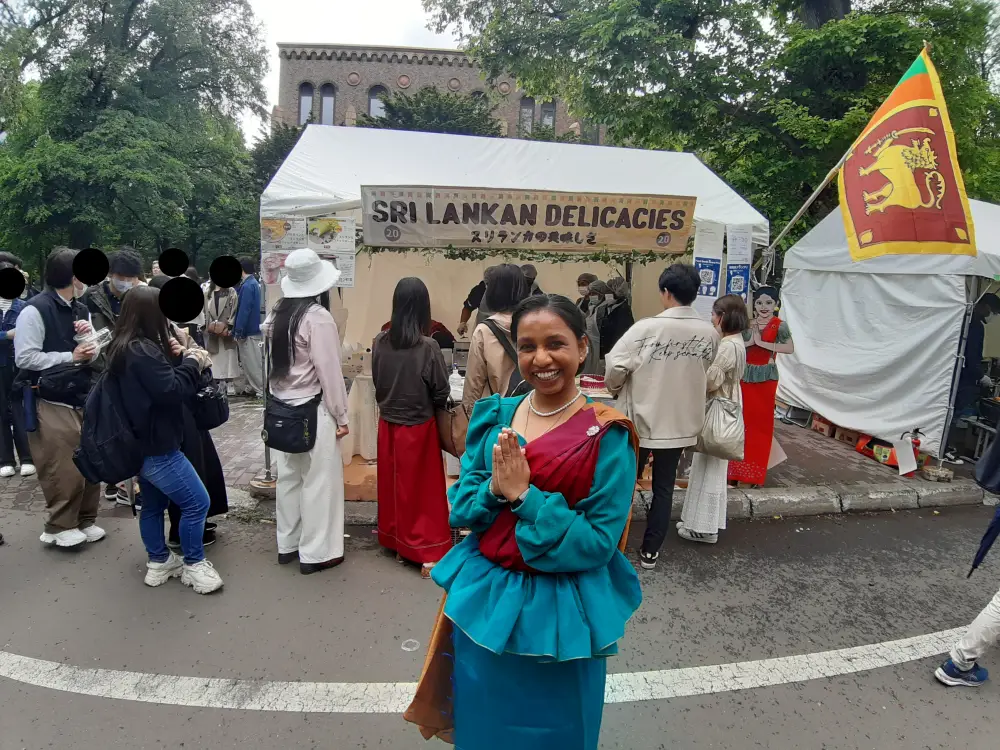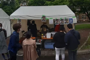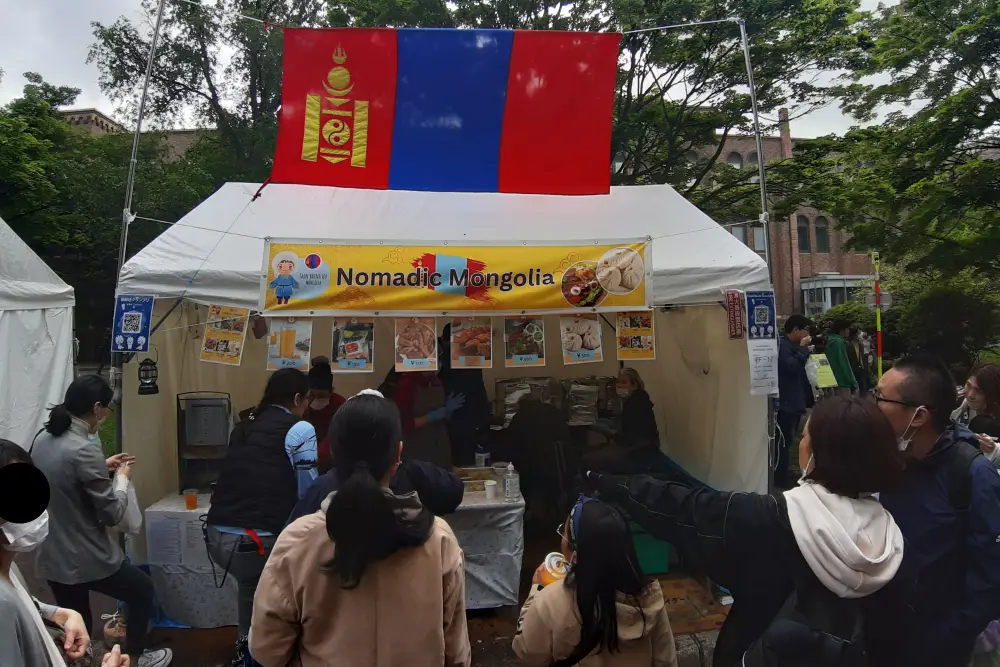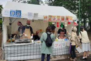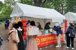 国際フードセクションは北大の南部にあり、ここでは、北海道大学の留学生が国籍に基づいてチームを組み、各国/地域固有の特別な料理をテントで作って販売していました。写真は参加国/地域名のアルファベット順に並んでいます。