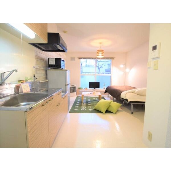 敷金・礼金なし、北海道大学の北20条ゲートのすぐ隣、都市ガス、ネット無料、家電家具付き。