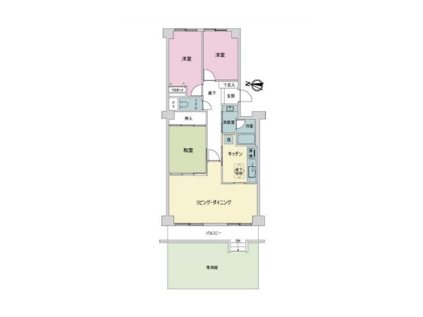 都市ガスアパート、延床面積66.28㎡、バルコニー6.96㎡、庭22㎡