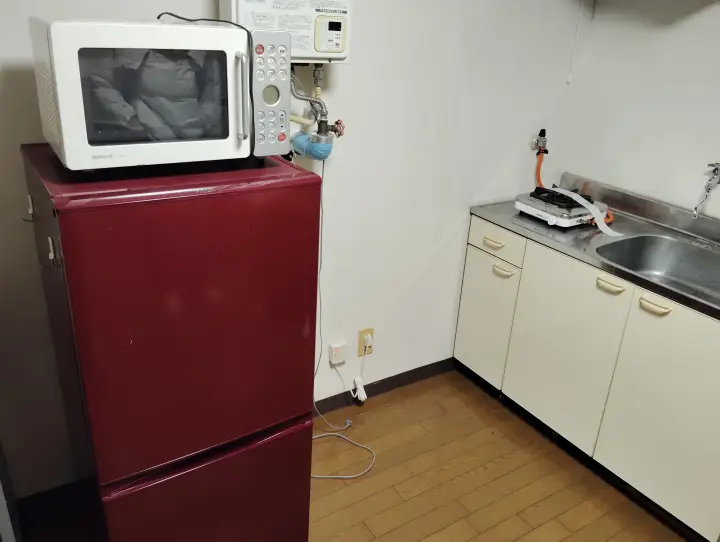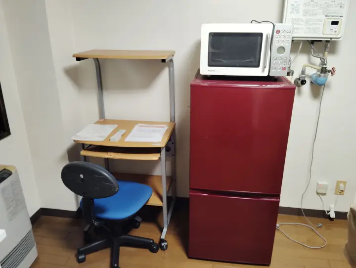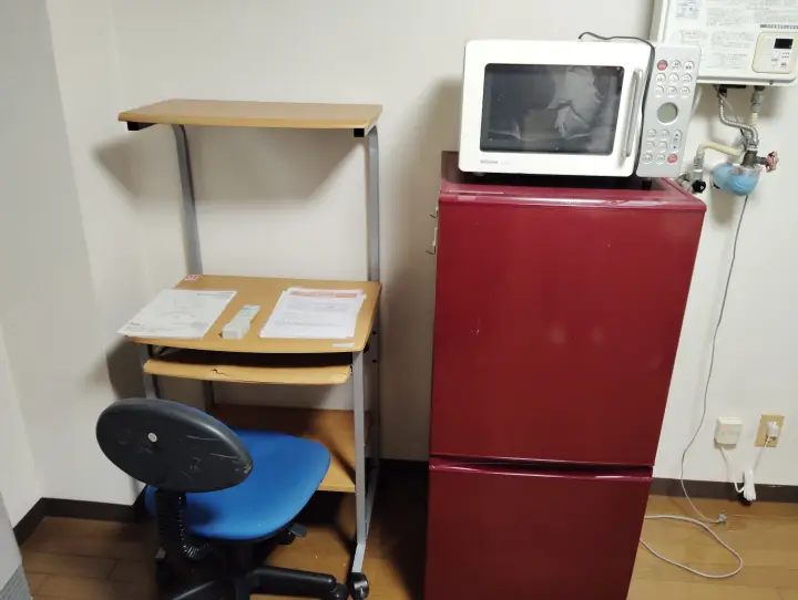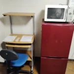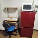 家具付き(ベッド、冷蔵庫、洗濯機、電子レンジ、勉強机、椅子)。