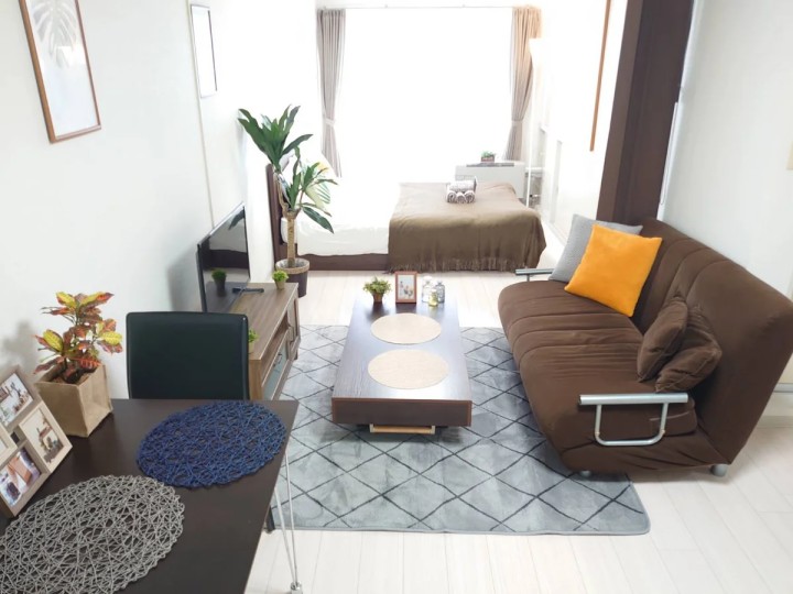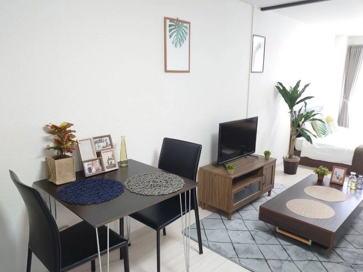 - Other Facilities: double bed, tea table, sofa, TV, dining table, 2 dining chairs, 2-burner IH stove, fan, vacuum cleaner, rice cooker, kettle, fridge, washing machine, microwave, stove, free internet.