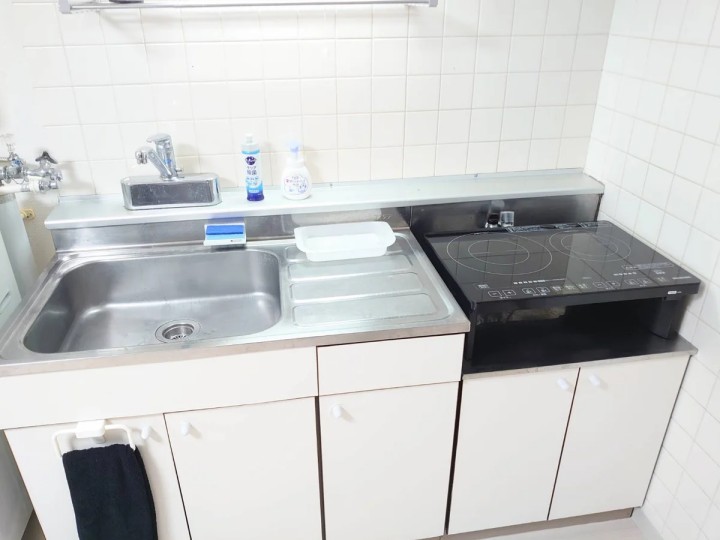 - What’s included: Appliances and furniture included, utensils, double bed, tea table, sofa, TV, dining table, 2 dining chairs, 2-burner IH stove, fan, vacuum cleaner, rice cooker, kettle, fridge, washing machine, microwave, stove, free internet.