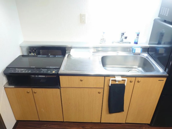 - What’s included: Appliances and furniture included, utensils, double bed x1, tea table, sofa, TV, dining table, 2 dining chairs, 2-burner IH stove, AC, vacuum cleaner, rice cooker, kettle, fridge, washing machine, microwave, stove, free internet.
