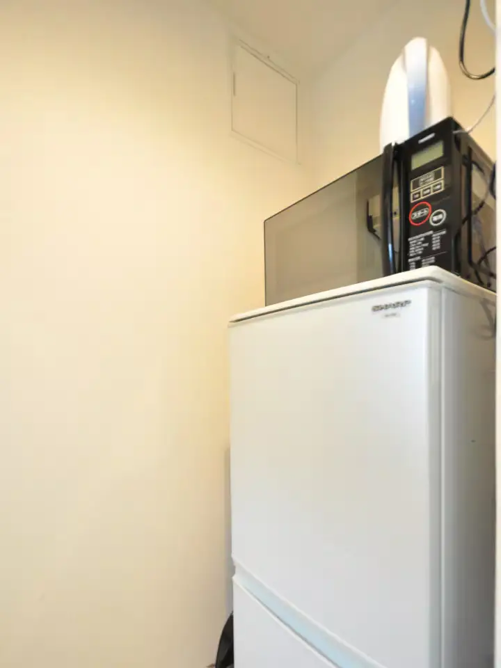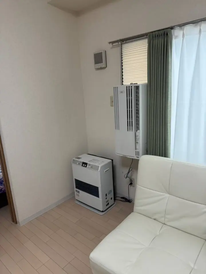 - What’s included: Double bed x1, sofa bed x1, refrigerator, washing machine, microwave, TV, kitchen, unit bath, Balcony, free Wi-Fi, AC table, chairs, curtains, single burner IH stove, cooking utensils, Kettle, glasses, plates, cutlery, circulator, iron set, gas heating Various detergents, vacuum cleaner, first aid kit, shampoo, conditioner, body soap, umbrella, Heating and Wi-Fi available