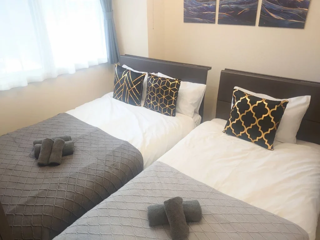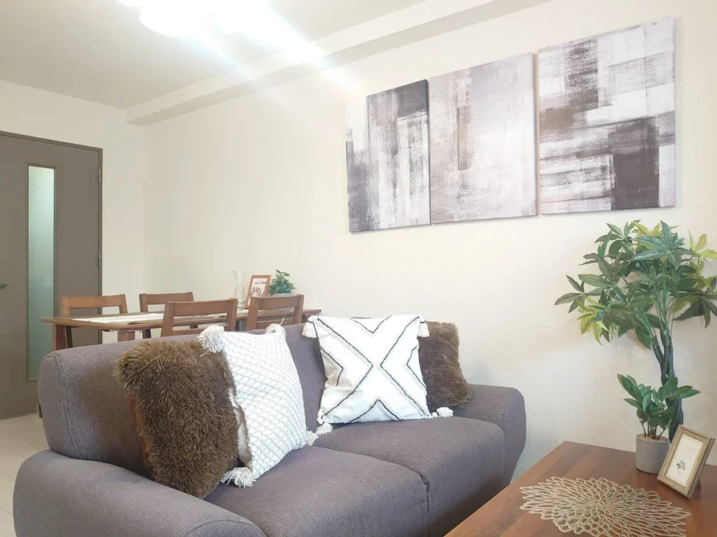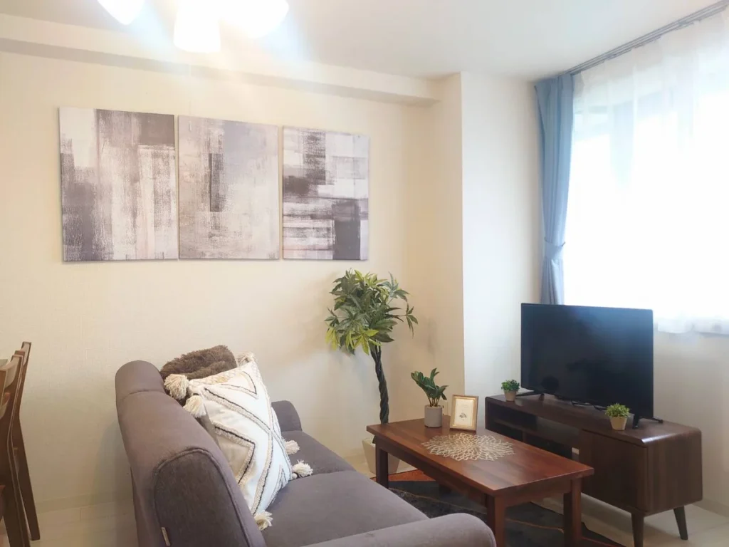- What’s included: Appliances and furniture included, utensils, semi double bed x1, single bed x1, sofa x1, tea table, TV, dining table, 4 dining chairs, 2-burner IH stove, fan, AC, vacuum cleaner, rice cooker, kettle, fridge, washing machine, microwave, free internet.