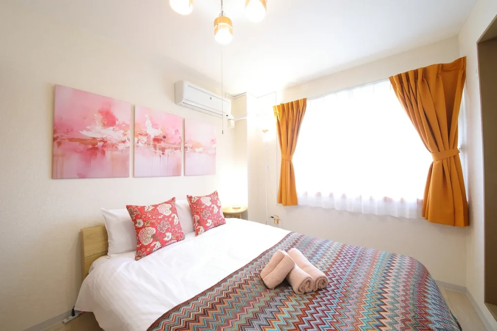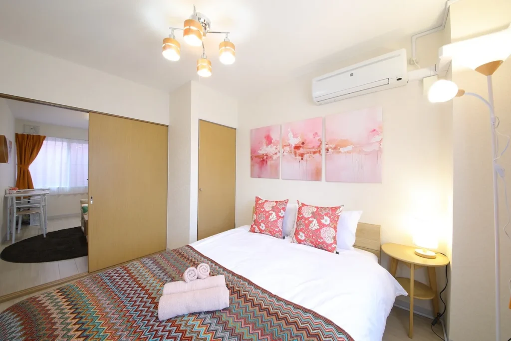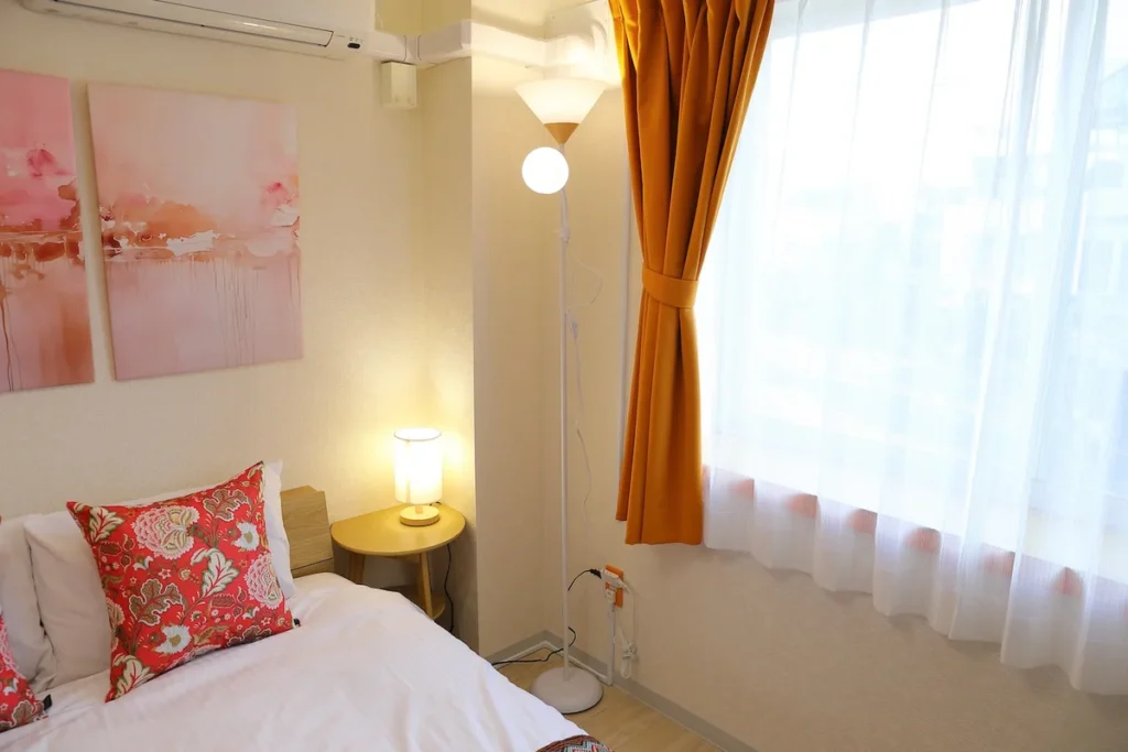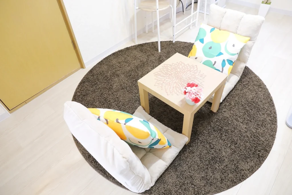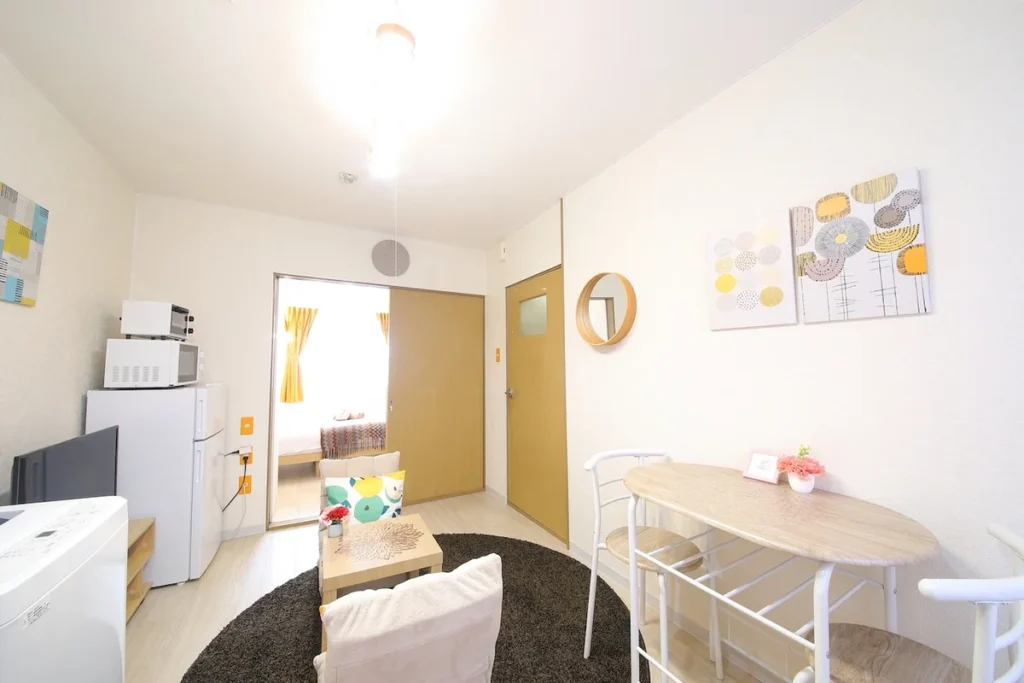 - What’s included: Appliances and furniture included, utensils, double bed x1, floor chair x2, tea table x1, TV, dining table, 2 dining chairs, 2-burner IH stove, fan, AC, vacuum cleaner, rice cooker, kettle, fridge, washing machine, microwave, free internet.